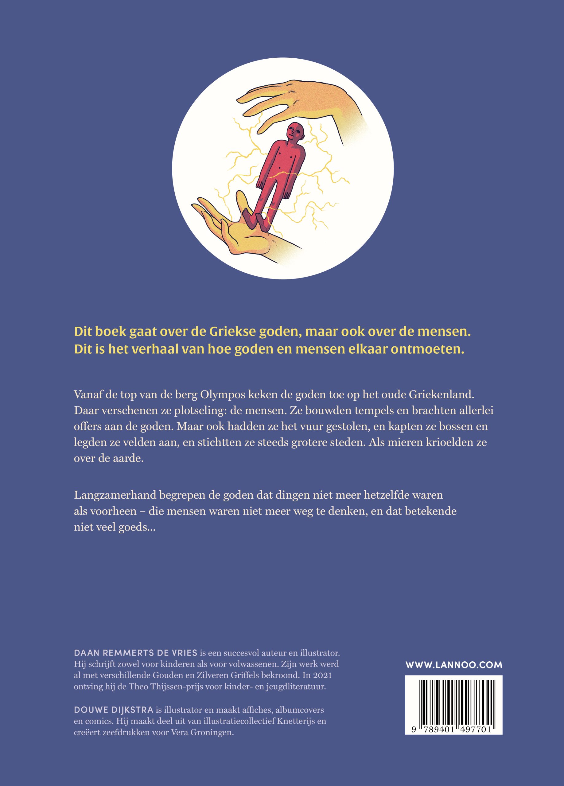 Vanaf de top van de berg Olympos keken de goden toe op het oude Griekenland. Daar verschenen ze plotseling: de mensen. Ze bouwden tempels en brachten allerlei offers aan de goden. Maar ook hadden ze het vuur gestolen, en kapten ze bossen en legden ze velden aan, en stichtten ze steeds grotere steden. Als mieren krioelden ze over de aarde.