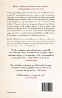 Honderdduizend jaar geleden waren er wel zes verschillende menssoorten. Nu is er maar één soort over, en dat zijn wij. Homo sapiens. Hoe komt het dat alleen wij zijn overgebleven? Hoe kwamen onze voorvaderen op het idee om steden en zelfs koninkrijken te stichten? Waarom gingen we in goden geloven, maar ook in natiestaten, en in bedrijven. Waarom vertrouwen we op geld, boeken en wetten? En hoe zal onze wereld er in de toekomst uitzien?